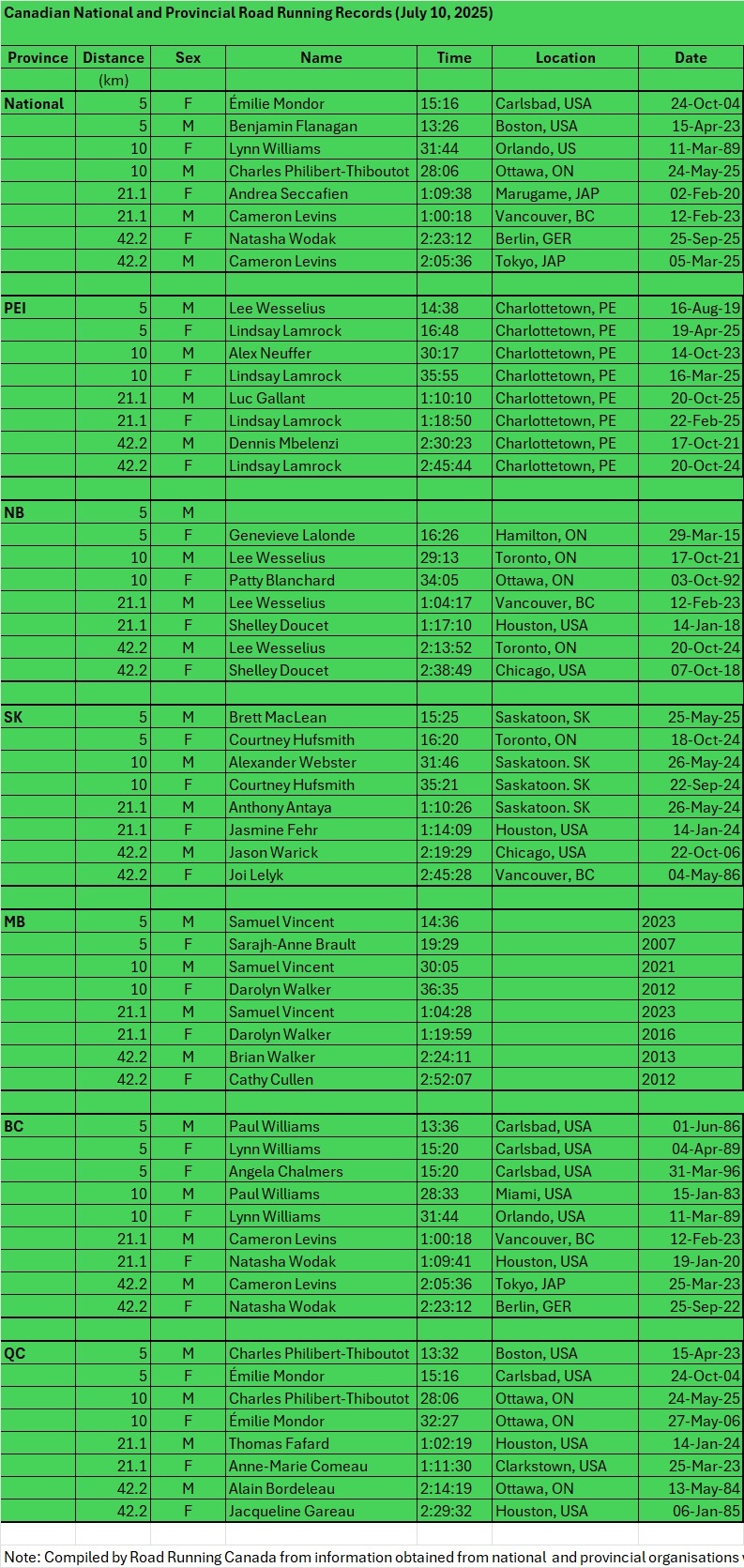 Canadian Road Running Records